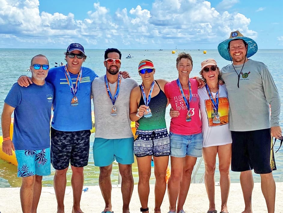 Swim for Alligator Lighthouse: Swimmers can participate as solo swimmers or in teams of two, three, or four to complete the 8-mile distance. The following Members participated in the event a few weeks back: Susanne Kramer, Liz Angelone, and Eric Soulavy. Also taking part in the event were myself, Director of Fitness & Wellness Luis Bracamonte, with kayaker Abraham Mirabal (Ocean Room Associate), Dr. Carlos Smith, visiting triathlon and endurance coach specialist Vanessa Soulavy, and Swim Coach Jon Olsen who is involved with the organization of the event.
