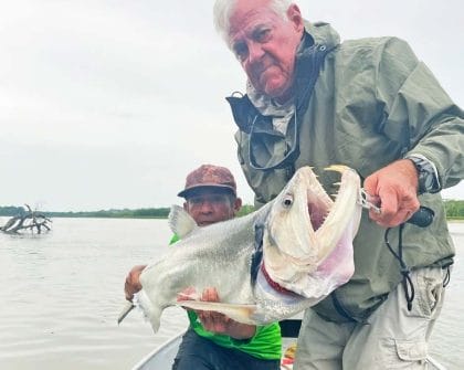 After a 5:30 am wake-up call, we gathered our gear and tackle (we had to take all of our own on this trip). For the next two days we fished for many species, but the payara fishing was very good. The team of Dr. Love and Guthrie Allen caught eight amazing payara in one day.