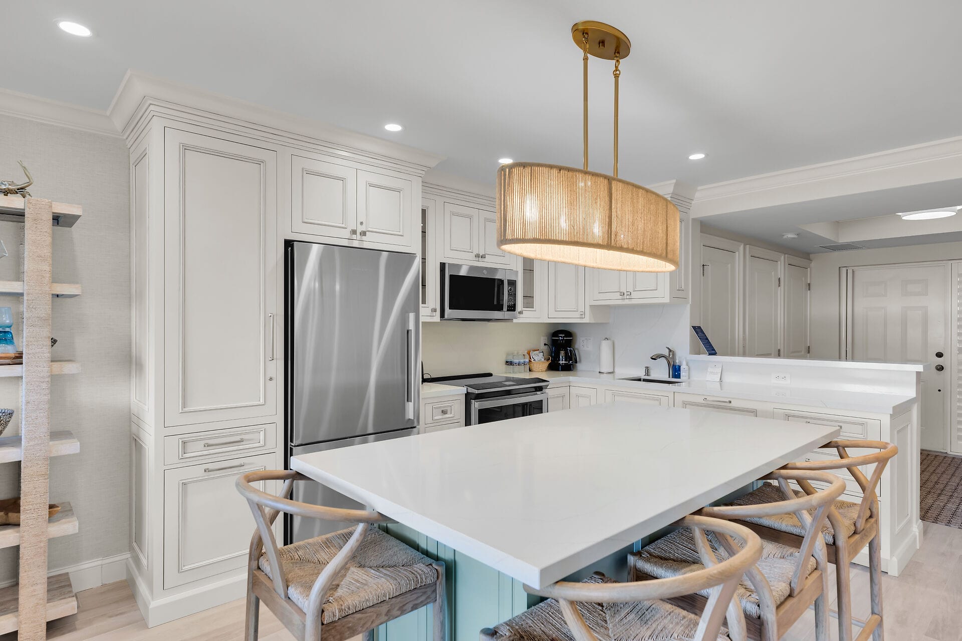The stack-able washer and dryer are located in the foyer of the unit.