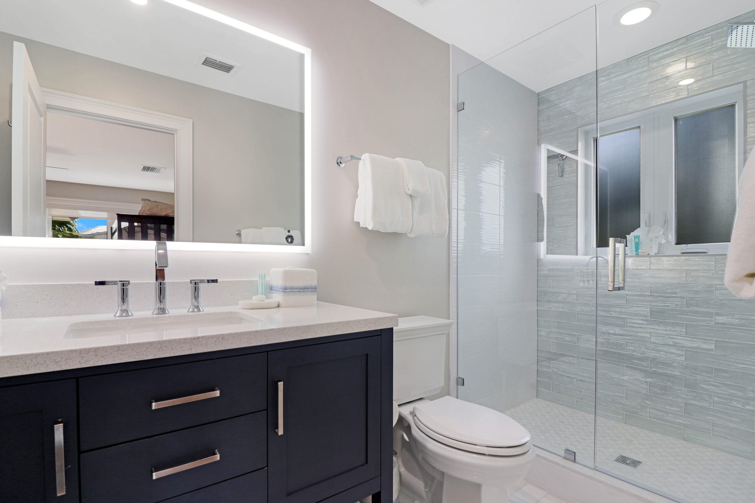 Guest bedroom-Queen bed and a set of bunkbeds, private bath also with walk-in shower